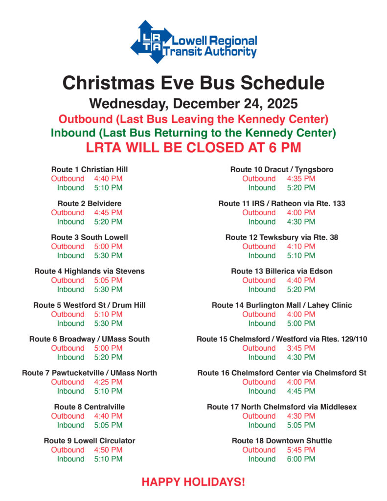 In observance of Christmas Eve, Wednesday December 24, the LRTA will close at 6 PM.